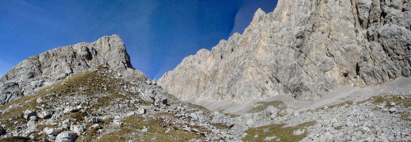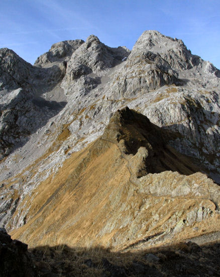 Saliamo per il sentiero che con stretti tornanti scavati nella roccia ci conduce alla Creta di Monumenz, un bel tratto che ci consente di guadagnare quota rapidamente, fino alle immediate vicinanze della cima.